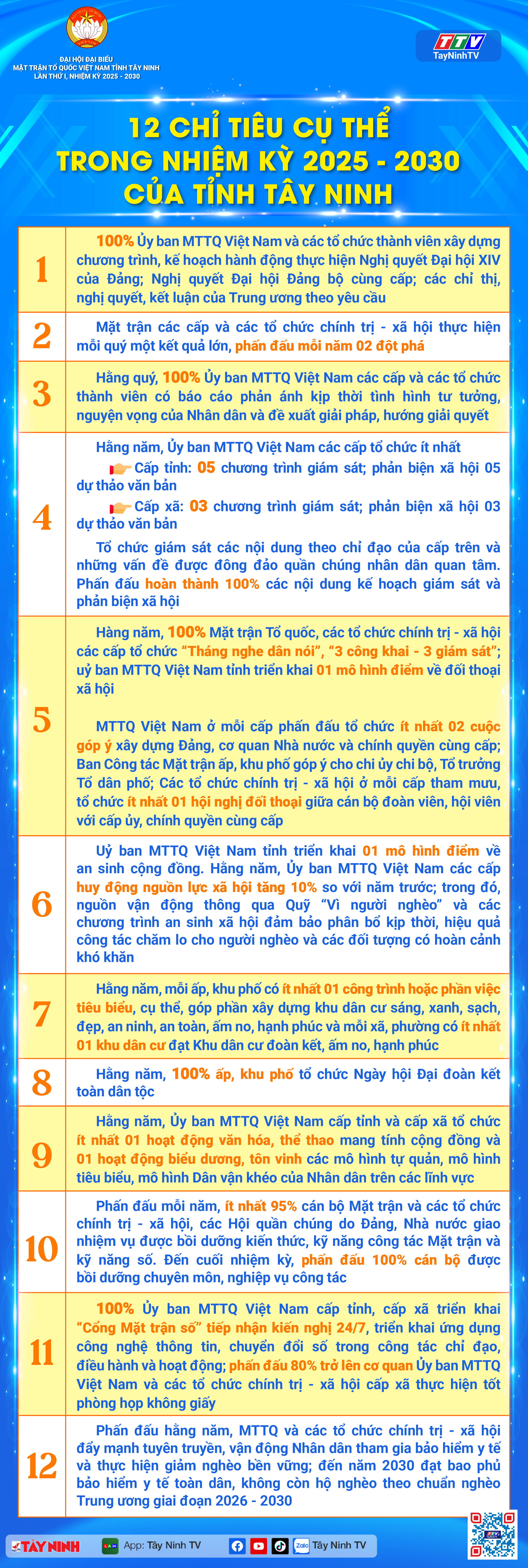 12 chỉ tiêu cụ thể trong nhiệm kỳ 2025 - 2030 của Ủy ban MTTQ Việt Nam tỉnh Tây Ninh