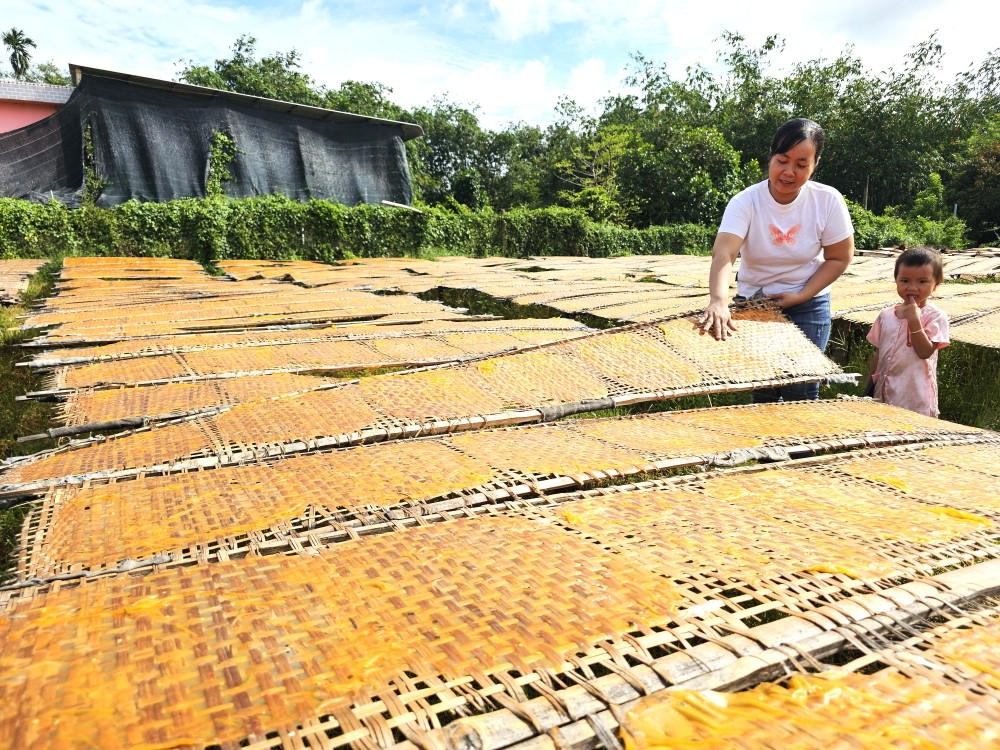 Born and raised in Gia Loc ward (formerly Trang Bang town), Ms. Nguyen Thi My Hien is very familiar with her family's rice paper making profession. Growing up, finishing university, she returned to her hometown and always wondered how to bring Trang Bang rice paper to many diners, helping to ease the hardships of rice paper makers in her hometown. She found the answer in her own business. Her Ngoc Uyen rice paper factory currently produces about 500kg of various types of rice paper, creating permanent and seasonal jobs for about 20 local workers. “The seasonal workers at my factory are mostly older uncles and aunts who stay at home to look after their grandchildren, then come here at the end of the day to remove the rice paper, weigh the rice paper, etc. In recent years, the Trang Bang Rice Paper Culture and Tourism Festival has been organized to help many people know about the product. Thanks to participating in the festival, I have found more customers and opportunities to promote our hometown's specialties" - Ms. Hien shared.