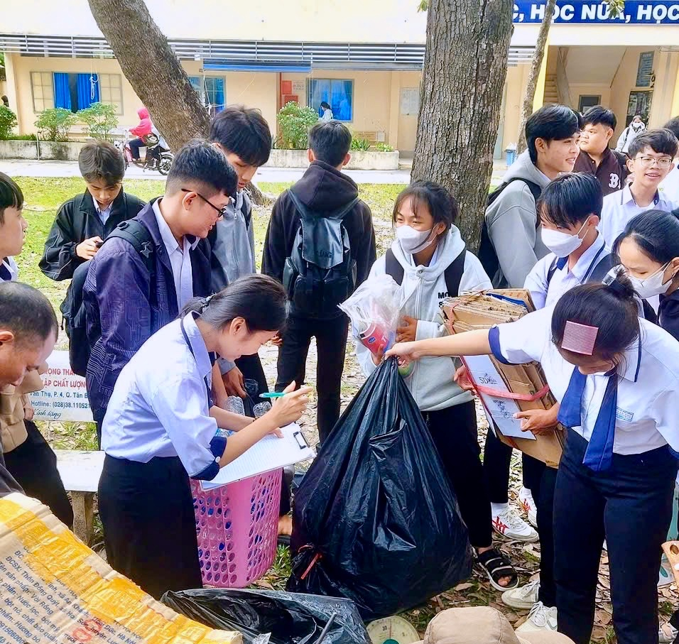 Đoàn trường còn tổ chức kế hoạch nhỏ “Vòng tay bè bạn” bằng hình thức thu gom và phân loại rác thải nhựa đã qua sử dụng, bán gây quỹ được hơn 22 triệu đồng, tiếp sức cho 48 em học sinh nghèo vượt khó đến trường.