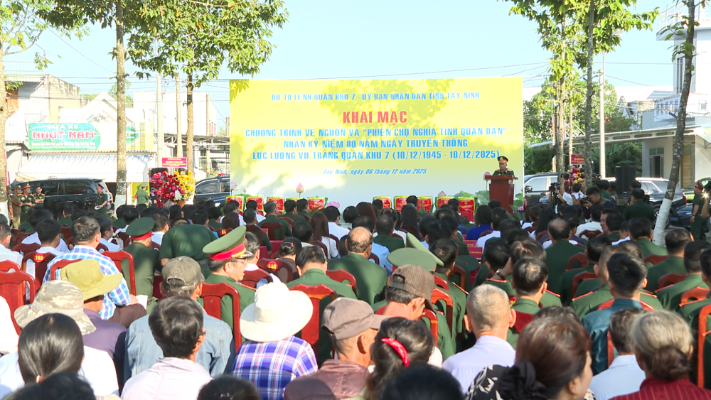 Sáng 06/12, tại Trung tâm Văn hóa xã Đức Huệ, tỉnh Tây Ninh, Bộ Tư lệnh Quân khu 7, UBND tỉnh tổ chức chương trình khai mạc về nguồn và “Phiên chợ nghĩa tình Quân - Dân” nhân kỷ niệm 80 năm Ngày truyền thống Lực lượng vũ trang (LLVT) Quân khu (10/12/1945-10/12/2025).