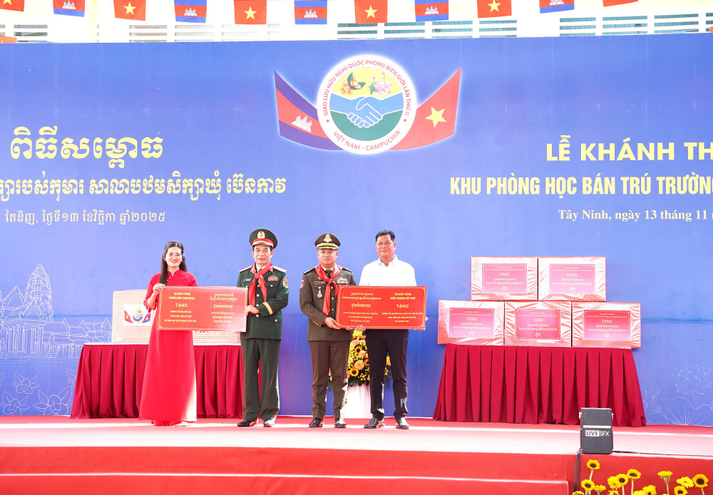 Tại buổi lễ, Đại tướng Phan Văn Giang và Đại tướng Tea Seiha cùng các đại biểu đã cắt băng khánh thành khu phòng học bán trú Trường Tiểu học Bến Cầu; tặng quà và tham quan khu phòng học bán trú mới của nhà trường./.