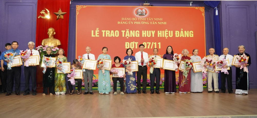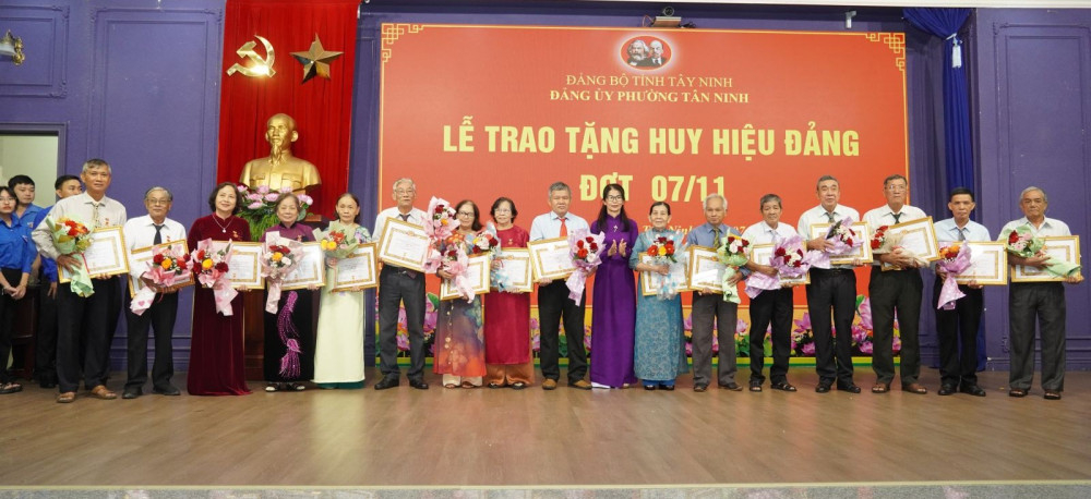 Sáng 07/11, Đảng ủy phường Tân Ninh (tỉnh Tây Ninh) tổ chức Lễ trao tặng Huy hiệu 60 năm, 55 năm, 50 năm, 45 năm, 40 năm và 30 năm tuổi Đảng cho 48 đảng viên đang sinh hoạt tại các chi bộ trực thuộc Đảng bộ phường Tân Ninh.