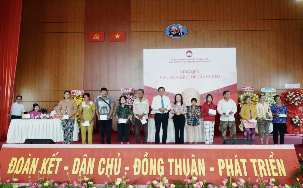Cũng tại Ngày hội, Ban công tác Mặt trận ấp Lập Thành, xã Hòa Khánh trao 100 phần quà cho các hộ dân có hoàn cảnh khó khăn trên địa bàn, mỗi suất quà là 500 ngàn đồng tiền mặt./.