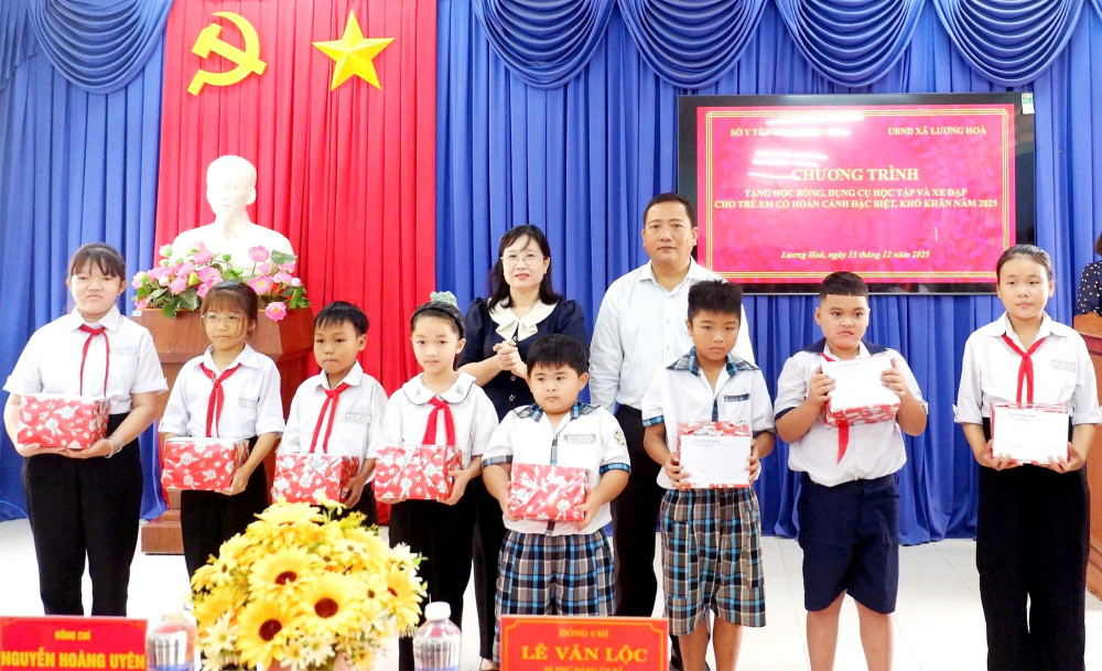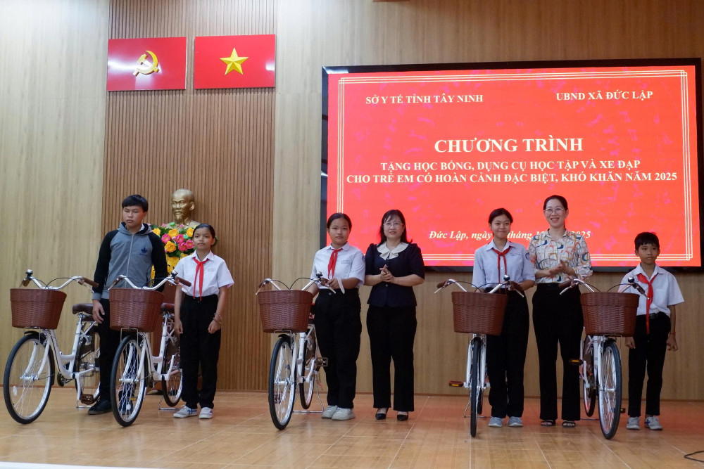 Tặng học bổng, dụng cụ học tập và xe đạp cho trẻ em có hoàn cảnh đặc biệt, khó khăn