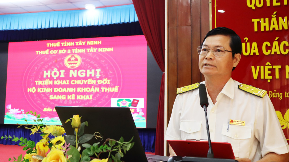 Thuế cơ sở 2 tỉnh Tây Ninh tổ chức hội nghị triển khai chuyển đổi hộ kinh doanh khoán thuế sang kê khai