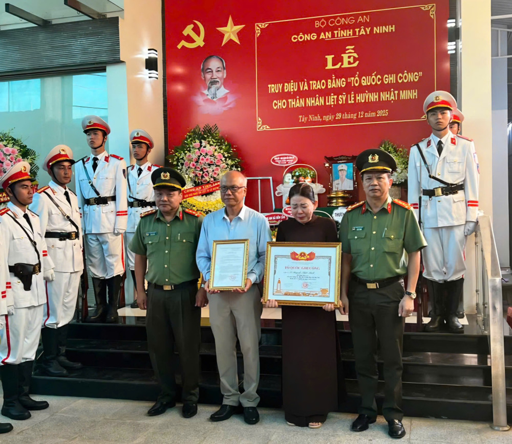 Truy điệu và trao Bằng 'Tổ quốc ghi công' cho thân nhân liệt sĩ Lê Huỳnh Nhật Minh