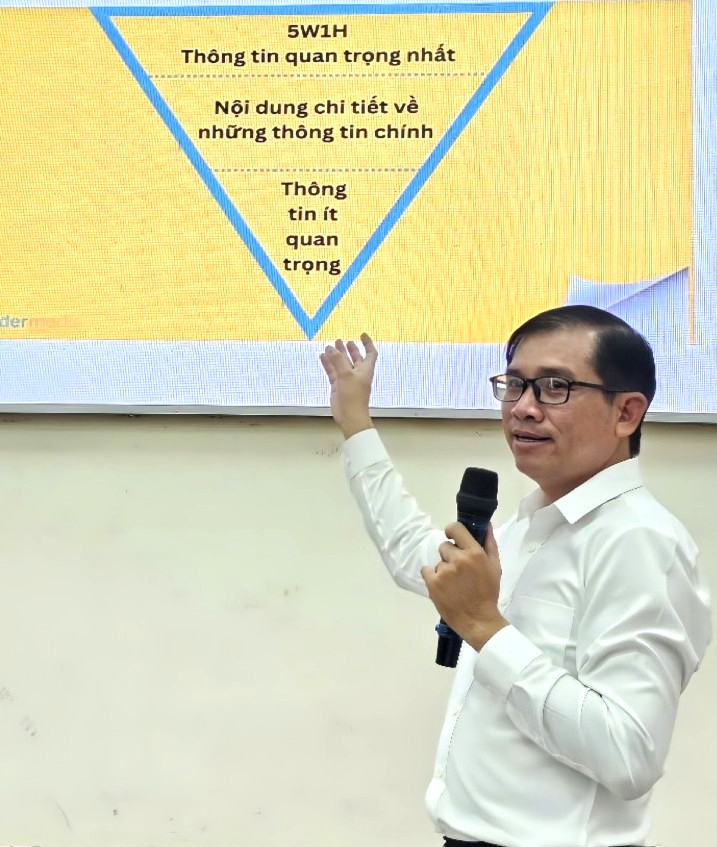 Tổng Biên tập Báo và phát thanh, truyền hình Tây Ninh Lê Hồng Phước giới thiệu cấu trúc tin bài thường gặp